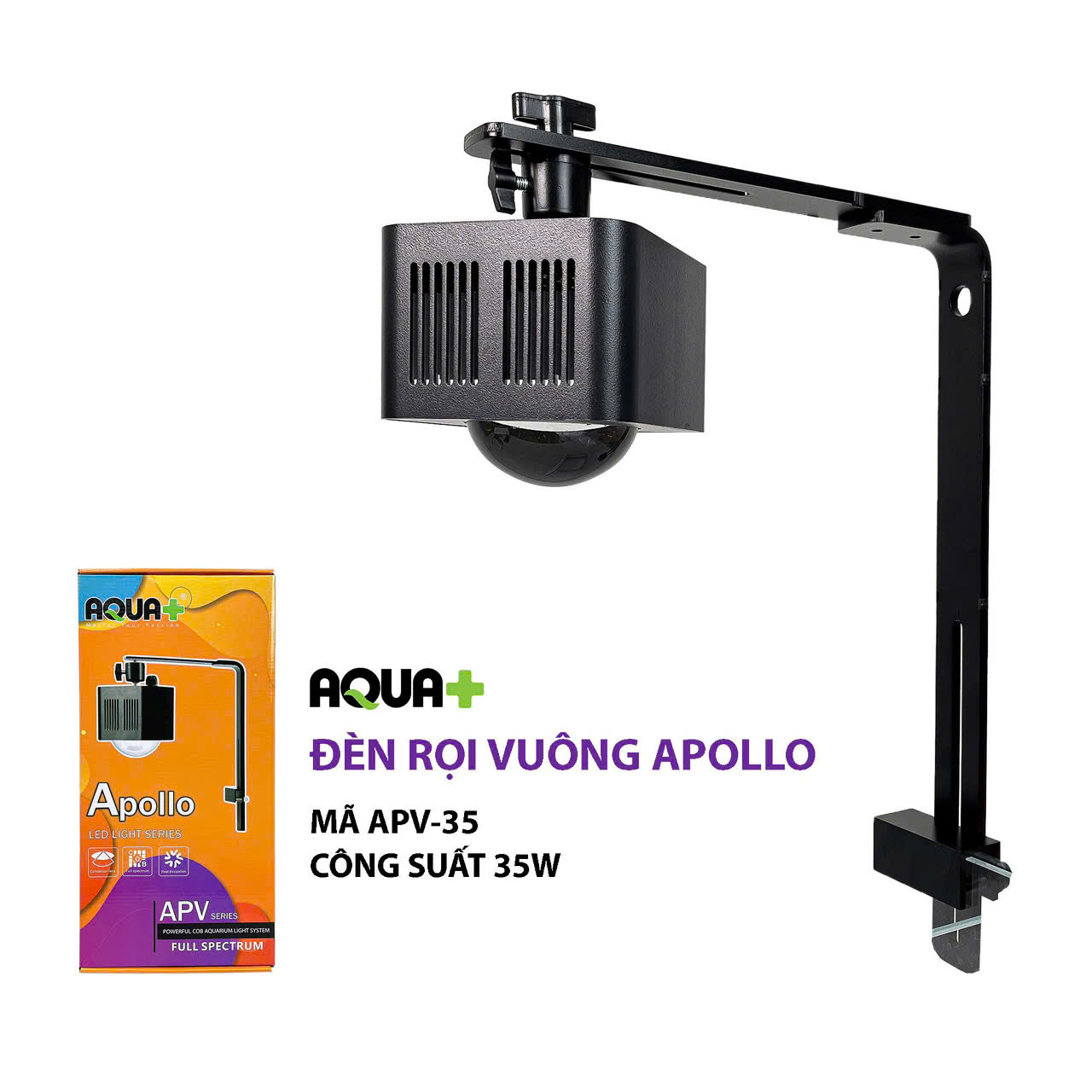 Đèn rọi bể cá Aquaplus Apollo series với 11 chế độ màu sắc, với đủ mọi cung bậc tự nhẹ nhàng tới mạnh mẽ, từ đêm trăng lãng mạn tới nắng hè dữ dội đều có trong chiếc đèn rọi 11 chế độ đang cực kỳ “hot” trên thị trường hiện nay. Với quá nhiều ưu điểm, nó xứng đáng là một lựa chọn hàng đầu nếu quý người chơi đang phân vân một mã đèn rọi cho bể cá yêu của mình. Ưu điểm dễ nhận thấy nhất là phần thiết kế ngoại thất. Nó đẹp và khác biệt hẳn so với một số sản phẩm đèn rọi khác được làm “hao hao” giống nhau theo các mẫu từ 2-3 năm trước. Với 2 mẫu vuông và tròn để người chơi lựa chọn. Các chi tiết cũng có độ hoàn thiện cao, sắc nét. Một ưu điểm nổi bật của đèn led nhà Aquaplus nữa là hãng luôn sử dụng những chip led mới nhất trên thị trường cho những sản phẩm của mình. Vẫn là chíp led RGB nhưng cũng có loại “this” loại “that” chứ không phải loại nào cũng như loại nào đâu ạ. Thế nên, chất lượng ánh sáng của Aquaplus Apollo luôn luôn đứng trong top đầu. Một đặc sản trong thiết kế của Aquaplus là bộ điều khiển 11 chế độ phối màu khác nhau để chơi được hầu hết các loại cá cảnh và làm hài lòng ngay cả những người chơi khó tính nhất. Có thể một vài người chơi sẽ thích cái đèn vài triệu với điều khiển app, nhưng với đại đa số mọi người thì việc cài đặt app, kết nối app, chỉnh app, fix lỗi app là quá mệt mỏi. Với các nút điều chỉnh cơ, 11 chế độ tích hợp sẵn, và mức giá vài trăm nghìn, đây thực sự là một lựa chọn tuyệt vời. Phụ kiện đi kèm cũng vô cùng đầy đủ để quý người chơi có thể dễ dàng lắp đặt chân đế một cách chắc chắn vào thành bể, điều chỉnh và cố định hướng chiếu của đèn với tuỳ chọn mọi góc độ, dây điện được kẹp chặt vào chân giữ với kẹp dây đi kèm chứ không thả rông như 1 số hãng.